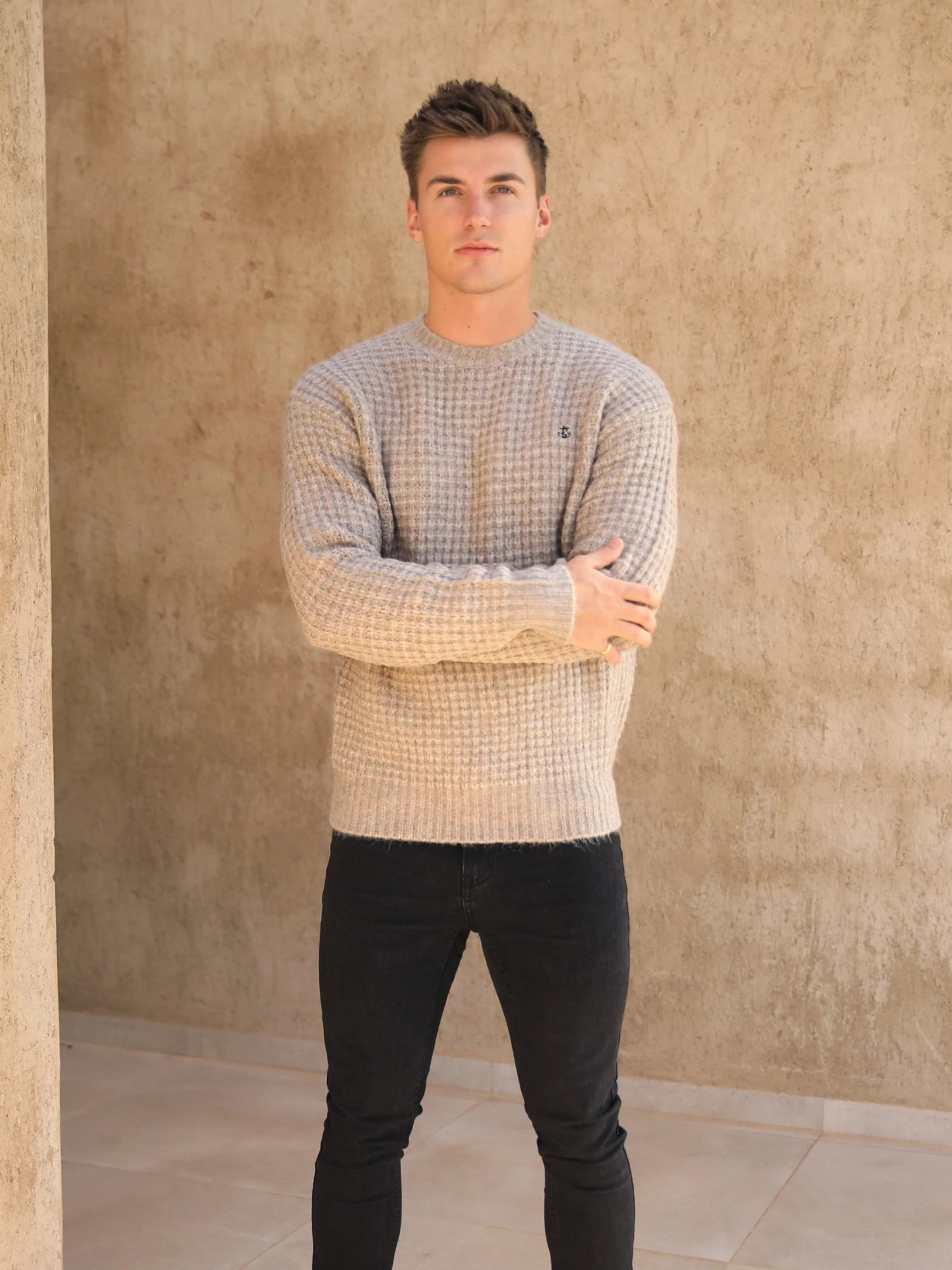 The Burford knit is perfect to throw on with your favourite pair of jeans. With a slightly relaxed fit in our chunky waffle knit fabric it’s both versatile and durable.Â