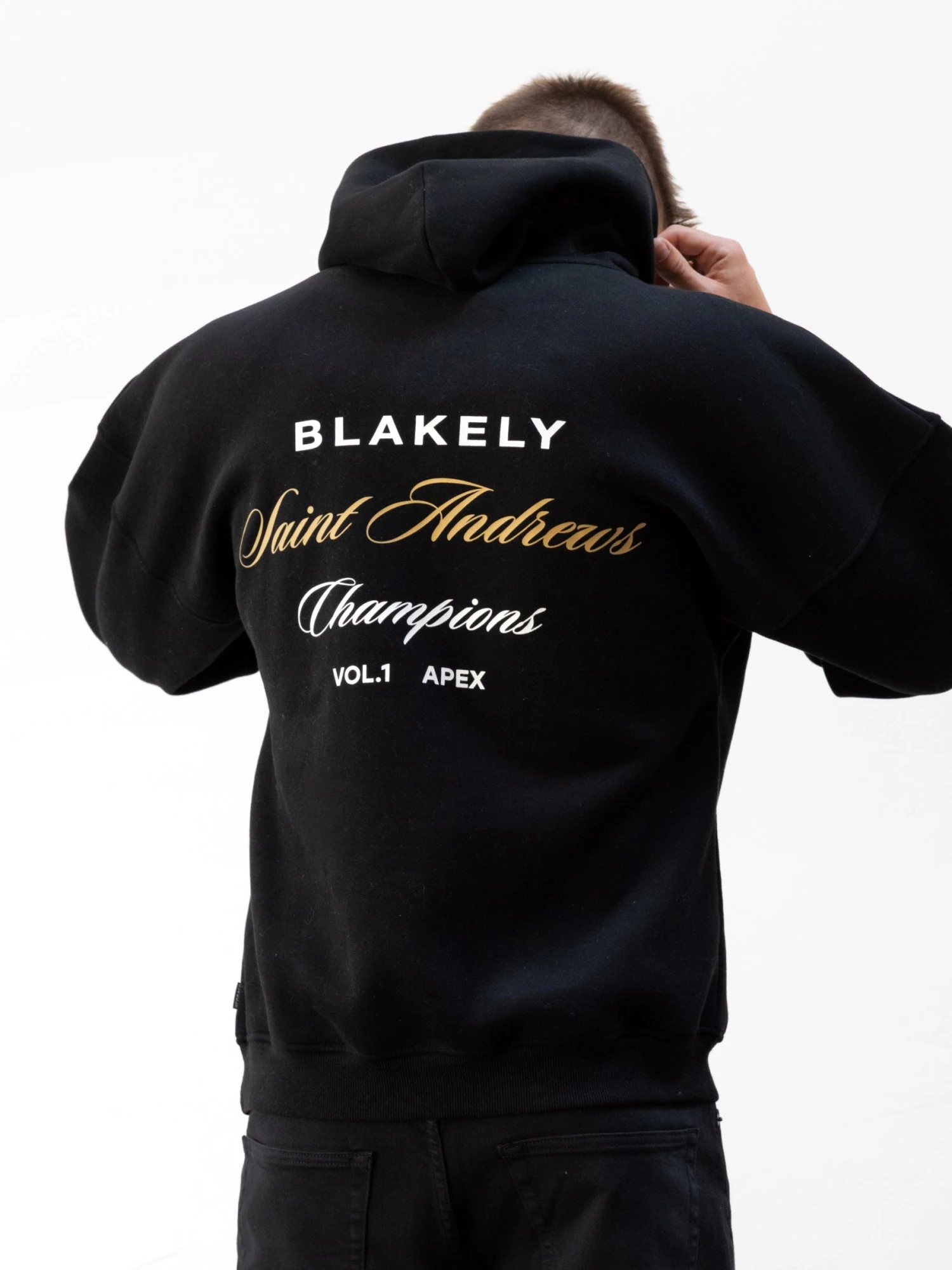 Part of this collection is our Champions Legacy Hoodie in Black. This hoodie is crafted from a soft cotton blend with a relaxed fit. It has ribbed hems and cuffs and features our Champions Series logo on the back and Blakely logo on the front.