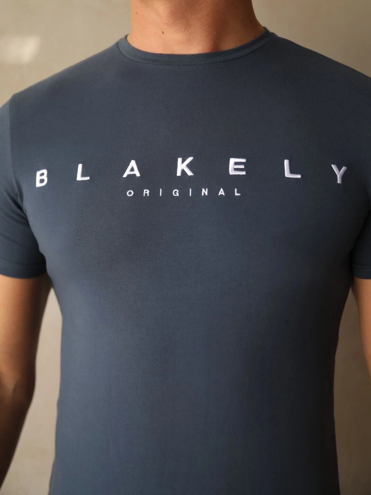 The Dalton T-shirt in blue has a slim fit and short sleeves. It’s made from a soft cotton blend, which is both breathable and stretchy. The top features a crew neck collar and is finished with a large white embroidered Blakely logo on the chest.Â