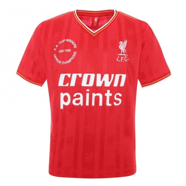 Introduce the next generation of Reds fans to a legendary era in football history with the Liverpool FC Kids 1986 Crown Paints Retro Home Shirt. This iconic jersey commemorates Kenny Dalglish’s debut season as player-manager, a historic campaign where the club achieved the legendary double victory of the FA Cup and the League Title. Combining vintage style with modern durability, this shirt is a tribute to one of the most successful seasons in the club’s history.