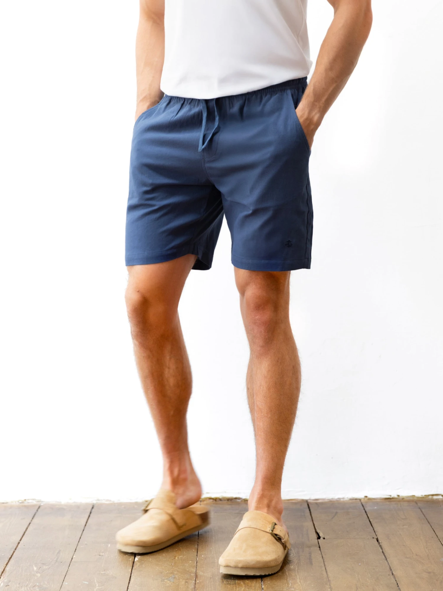 Our Madeira shorts are made from lightweight, breathable fabric, designed for effortless summer wear. Cut for a relaxed fit, they feature a drawstring waistband, side pockets, subtle pocket tab branding and a Anchor logo on the leg.